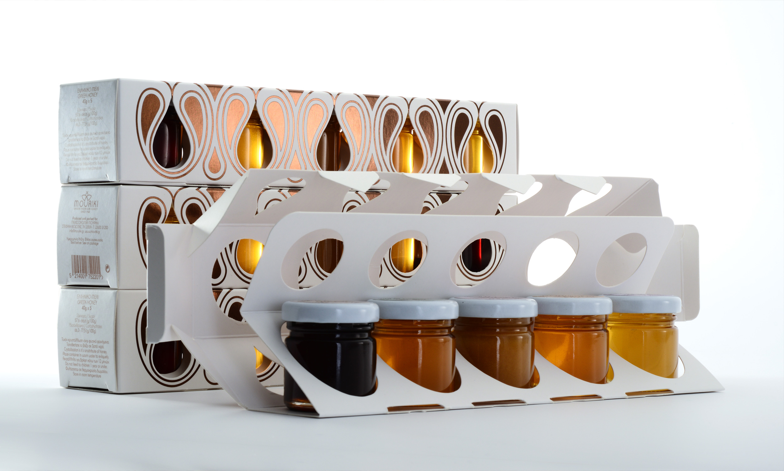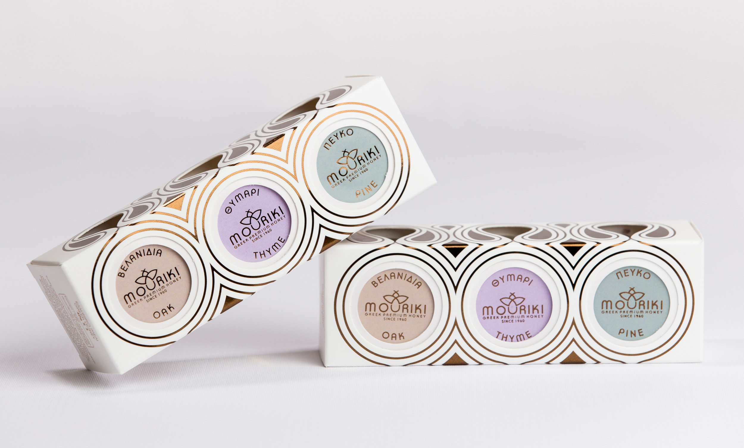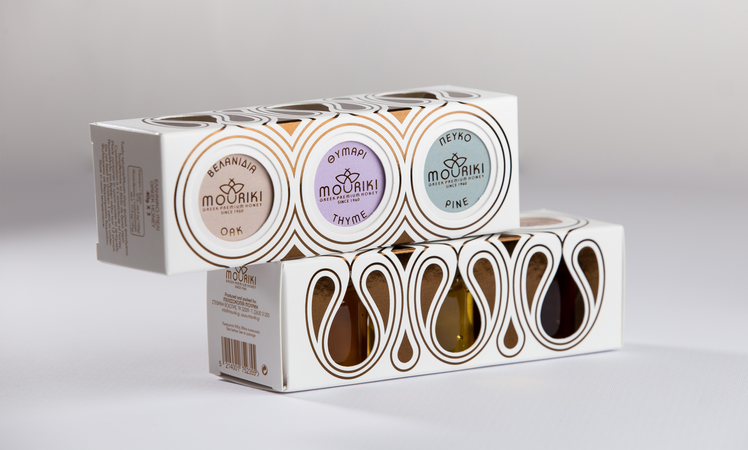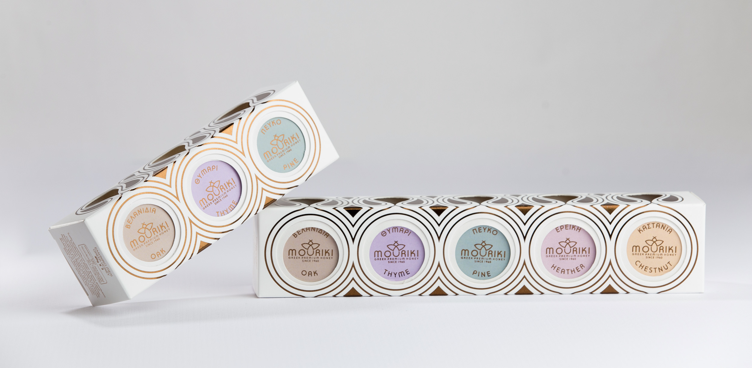A luxurious, elegantly designed package was created for these 5 excellent varieties of Mouriki Greek Premium Honey, that were harmoniously combined in a high aesthetically pleasing paper package, hiding all the Greek nature inside them. Moreover, this luxurious multipackage is offered in smaller dimention (3 varieties of Mouriki Greek Premium Honey) ideal for gifts.